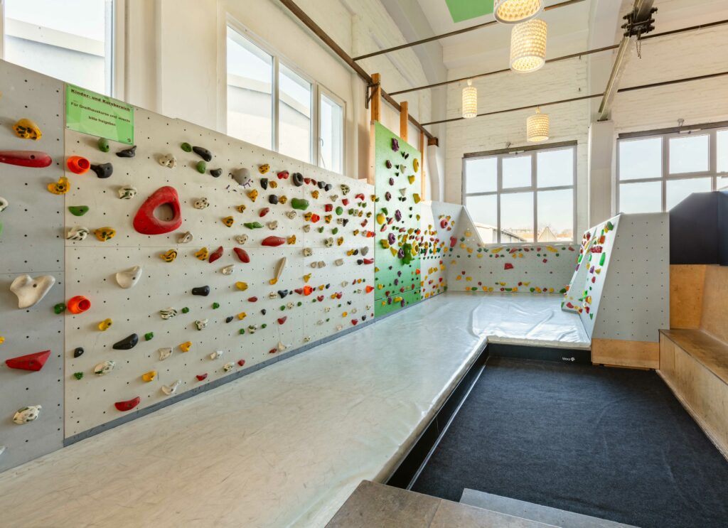 Unserer Kinderbereich eignet sich für kleine Boulderbegeisterte ab 3 Jahren. Die Wände sind hier niedriger und werden nicht durch feste Routen definiert. Dieser Wandbereich wird ebenfalls von Kindergeburtstagen und -gruppen genutzt – währenddessen ist das private Bouldern nicht möglich.